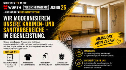 Wir nehmen an der Würth Vereinsheimwerker-Aktion teil und wollen unsere Kabinen und Sanitärbereiche neu machen – in Eigenleistung.